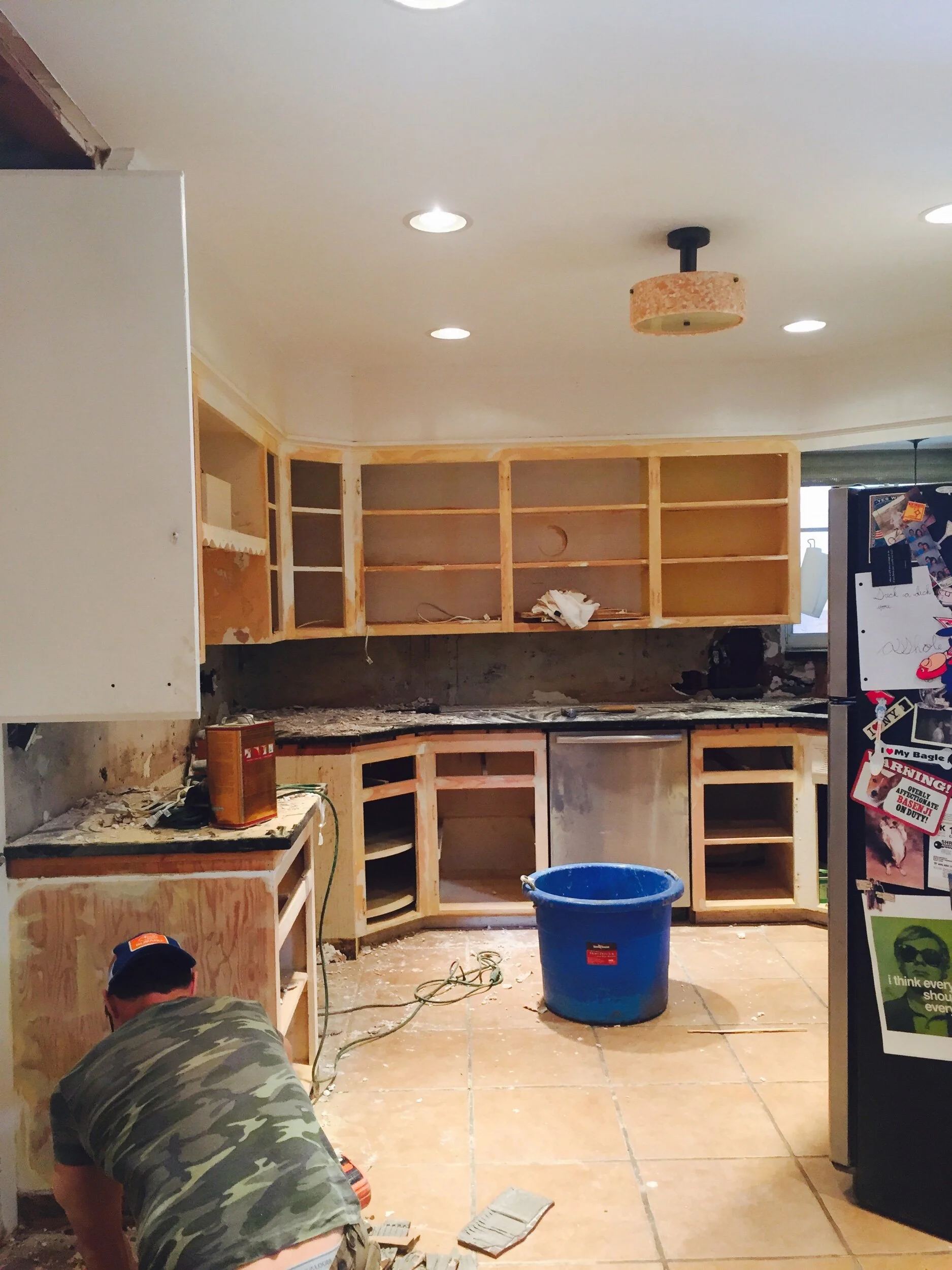 Let’s chat cabinets. New cabinets would have been amazing, but the price tag was just not doable for us at the time. We also knew that building our own cabinets was a little too out of our DIY capabilities. Our plan was to keep the original cabinets, refinish the doors and get all new hinges and hardware. Sounds simple right? Well, this process is a perfect example of how not every detail happens as planned, and you sometimes have just got to go with the flow.