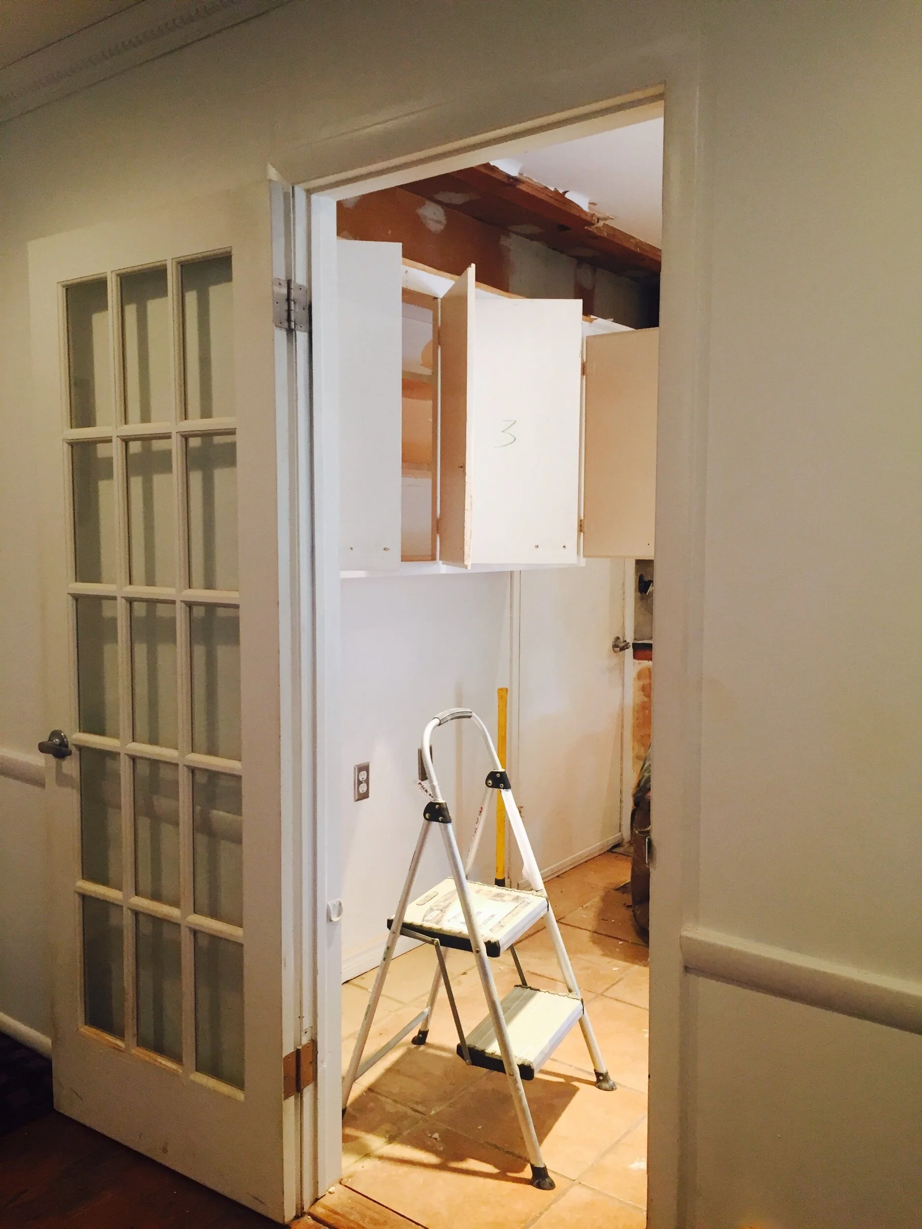 Before we ripped out the drywall above the cabinets.