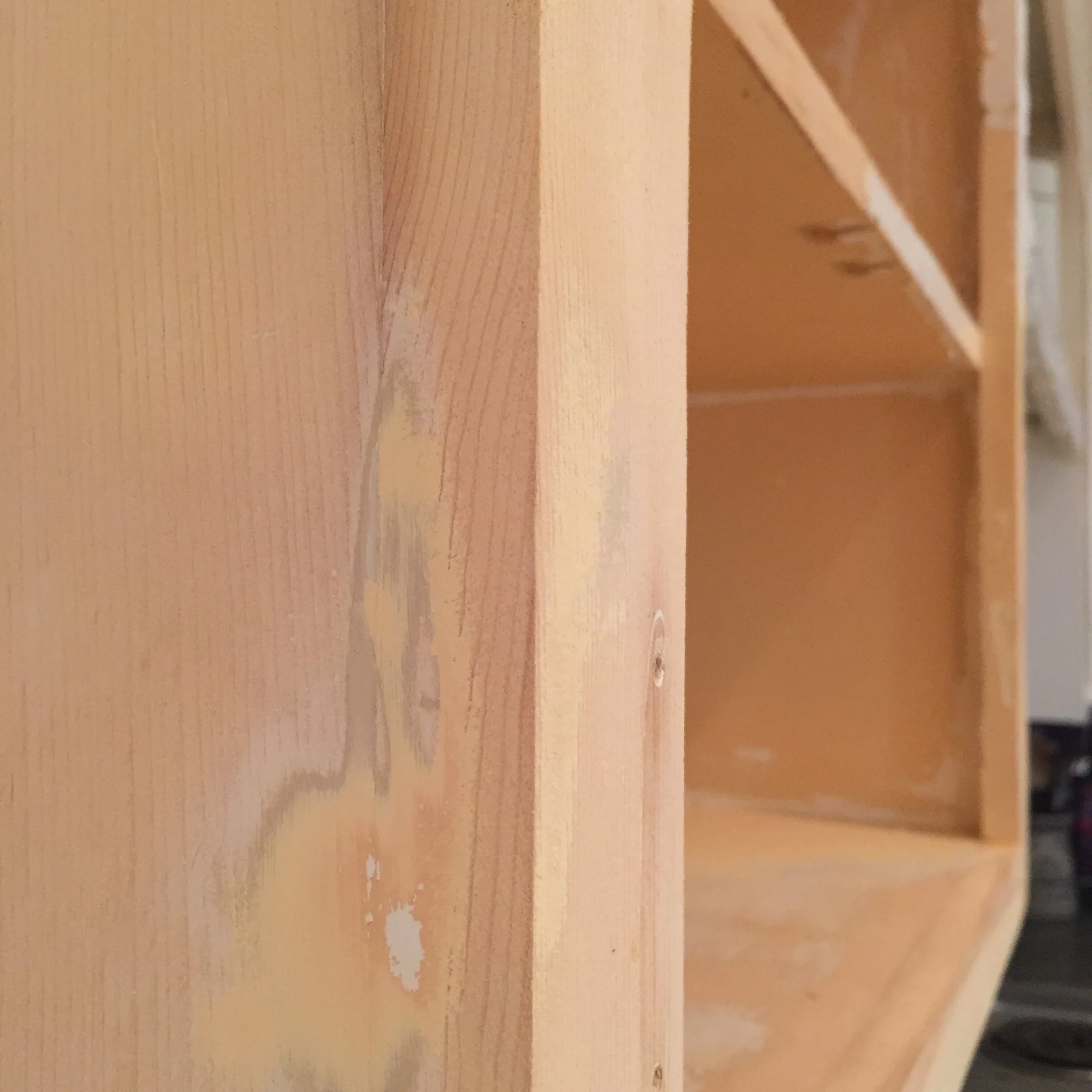 Second, we started with small little sanded down part of the cabinet to just see what the wood looked like underneath the MANY layers of paint. It was beautiful and I almost wanted to leave it natural and just seal it, but alas, we went ahead with the paint. We sanded the outside and insides of the cabinets. The insides were the hardest to sand, but we had to do this because there was old paint and wallpaper glue inside the cabinets. We couldn’t get all new cabinets but we wanted them to be as fresh and close to new as we could get them. I’m not going to lie, sanding the inside of the cabinets took a long time. I’ve blocked it out of my mind.